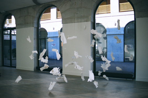 Installation: Gips, Nylonfaden Ausstellung: « Cercco Céramique Update », Centre d'art en Ile, Genf, 2007